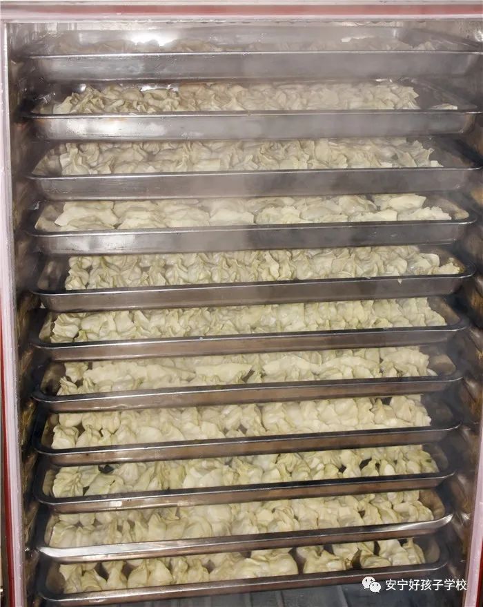 包完餃子后最想做的當然是品嘗自己的勞動成果啦!經過廚師的蒸煮,一盤盤熱氣騰騰、香氣四溢的餃子便新鮮出爐了!看著那一張張掛滿面粉但都笑容燦爛的面容,吃著一盤盤別出心裁但都裹滿愛意的餃子,別樣的冬至喜慶連連。