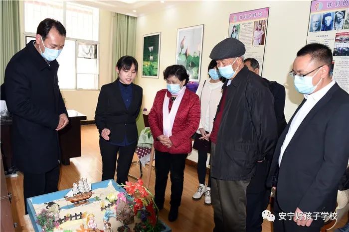 為了讓李主任一行能更加深入直觀地了解學校,學校領導陪同李主任從外到內、從硬件到軟件,依次參觀校園,并在多媒體教室觀看了教學活動短片。其間,還向李主任詳細匯報了學校的辦學理念、辦學特色、辦學成果、安全保障等工作。在走訪學校心理輔導室時,李主任還饒有興致地與我校心理輔導老師進行深入交流、解讀沙盤。