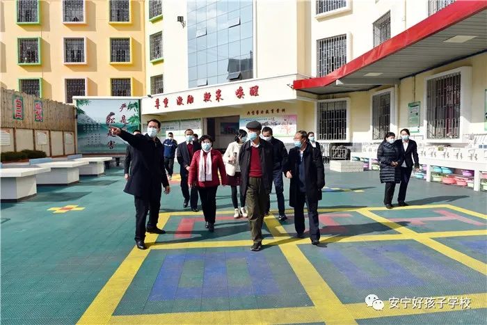 2021年1月21日上午,昆明市人大常委會原主任、市關工委主任李莊,昆明市政協原副主席、市關工委常務副主任汪葉菊,辦公室主任牛晶珊等,在安寧市人民政府副總督學王永麗,安寧團市委書記邵鵬、安寧市關工委專職副主任李庭貴、市委辦副主任李焰、團市委副書記徐濟炳等陪同下蒞臨我校調研指導工作。
