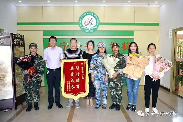 2021年5月20日上午,在我校畢業生曹語馨的出營儀式上,她的爸爸媽媽將一面繡有“智行德育,關愛成長”字樣的錦旗贈予學校,以此感謝學校對曹語馨的精心培育,我校副校長楊玉峰代表學校接下了這面沉甸甸的錦旗。