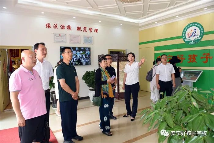 許秘書長一行懷著對學(xué)校的關(guān)心、關(guān)切之情,在校領(lǐng)導(dǎo)的陪同下,首先深入學(xué)校的辦公樓、教學(xué)樓、宿舍樓、食堂、心理輔導(dǎo)室等地進(jìn)行參觀。隨后在多媒體教室觀看了學(xué)校教學(xué)活動短片,更直觀、全面地對學(xué)校進(jìn)行了解。其間,李新紅副校長向許秘書長一行介紹了學(xué)校的辦學(xué)情況,訪問組一行連連稱贊學(xué)校是在做有情懷的教育,為社會傳播了很多正能量。隨后,領(lǐng)導(dǎo)們還親切走到孩子們身邊合影留念。