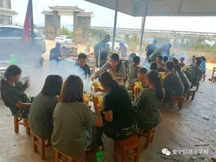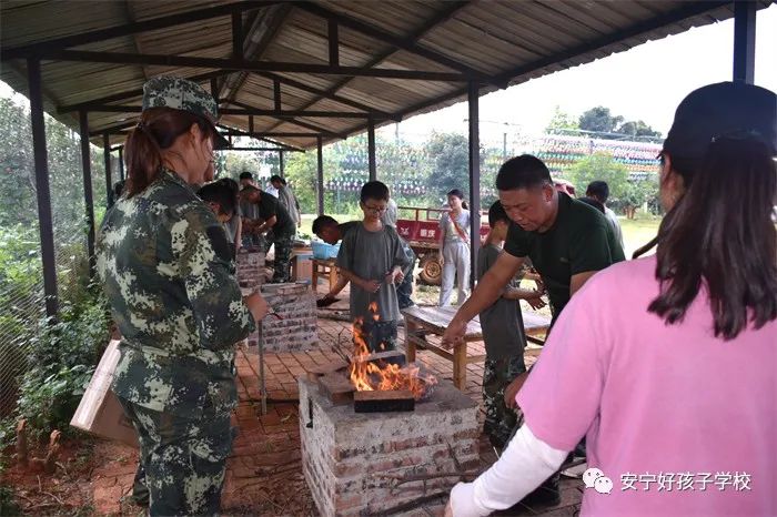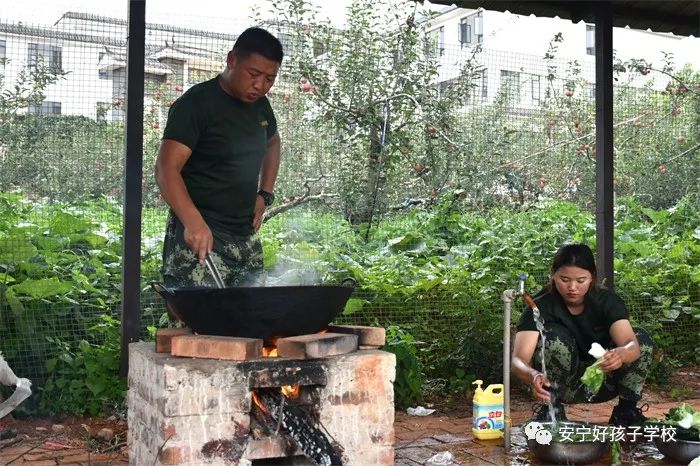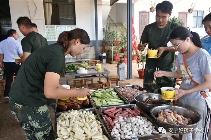 夕陽西下,孩子們在老師的帶領下準備晚餐。拾柴、生火、洗菜、炒菜......大家各展所長,整個草灘上變得熱鬧起來。不一會兒,一陣陣香味撲鼻而來,一盤盤讓人垂涎欲滴的菜肴便呈現在同學們眼前。“開席!”隨著尹校長的一聲令下,大家迅速行動起來,紛紛舞動著筷子,爭相品嘗著別樣的晚餐。
