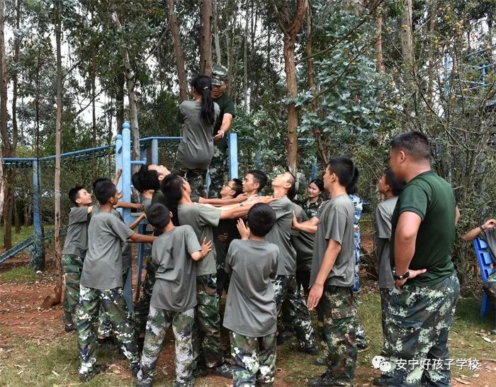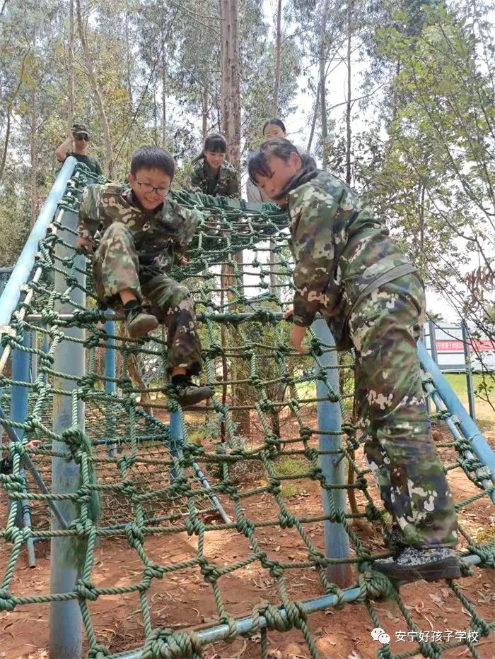 品嘗了特色美味佳肴后,稍作休整,大家便來到了項目多樣的戶外拓展基地,體驗了叢林穿越網繩、蹺蹺板、蕩秋千、蕩橋、攀巖、信任背摔等10余個項目。活動中,孩子們始終保持飽滿的熱情、高昂的斗志,積極參與,用心體會,努力完成著每一個項目。雖然在挑戰過程中,有的孩子有過膽怯、有過害怕,但在老師的幫助和隊友們響亮的加油打氣聲中,他們沒有退縮、沒有放棄,憑借著頑強的毅力,堅定的信念和團結協作的精神通過了重重難關考驗。