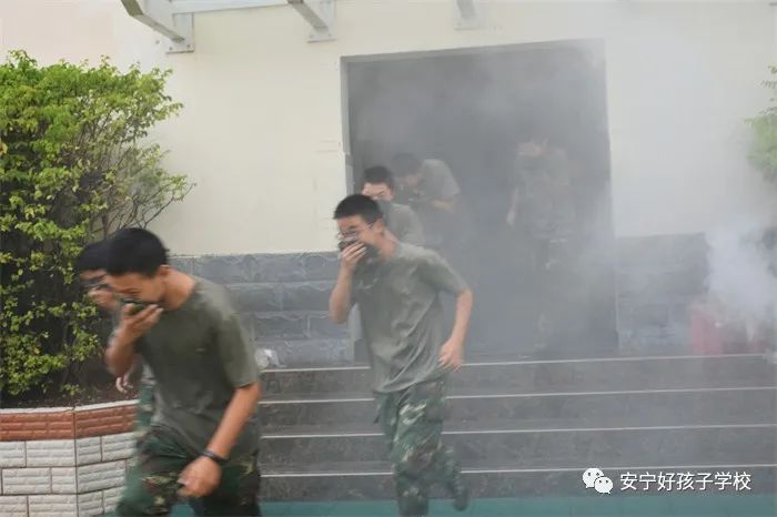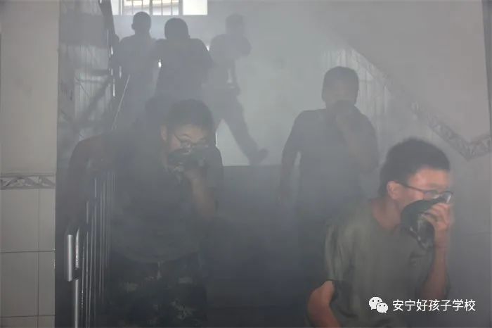緊接著,在急促的警報聲中,學校全體師生開始了消防疏散演練。班主任老師按各自的分工,以班級為單位,分區域、分方向、分樓層,按照規定路線指揮同學們向安全出口疏散。同學們用濕潤的毛巾、帽子或者雙手捂住口鼻,彎著腰井然有序的快速撤離到操場。全校學生在一分鐘內全部集中到了操場中央,并進行了人數清點工作,保證全員安全撤離。