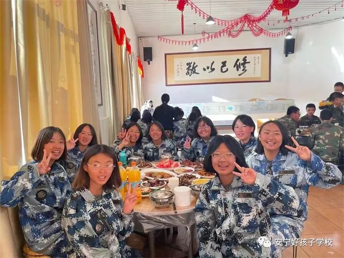 經過一天的忙碌,傍晚,孩子們幫著學校廚師們為師生精心準備的美食端上餐桌。