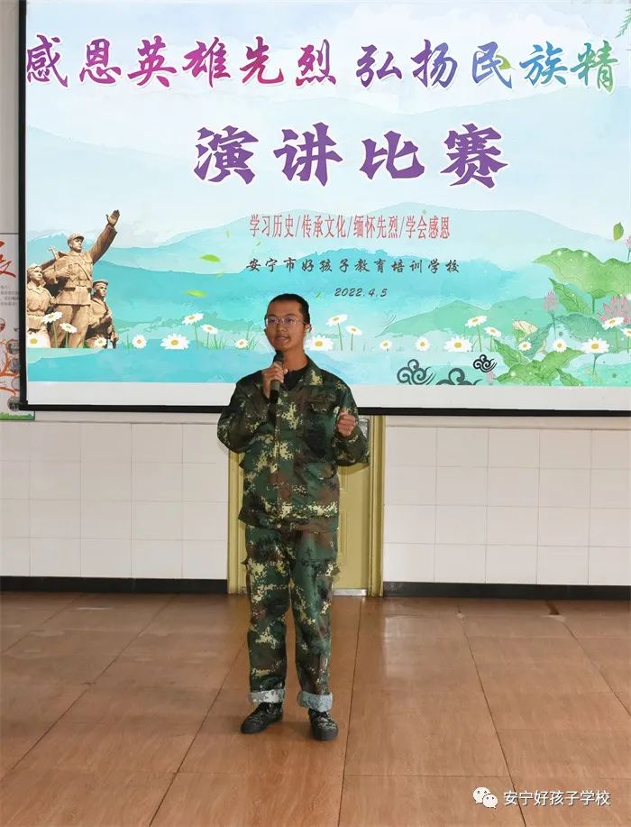 緊接著,開(kāi)展了以“感恩英雄先烈 弘揚(yáng)民族精神”為主題的演講比賽。賽場(chǎng)上,12名選手激情飽滿、意氣風(fēng)發(fā),用洪亮的聲音、真摯的情感,緊緊圍繞主題,講述了一個(gè)個(gè)革命先烈的感人故事。