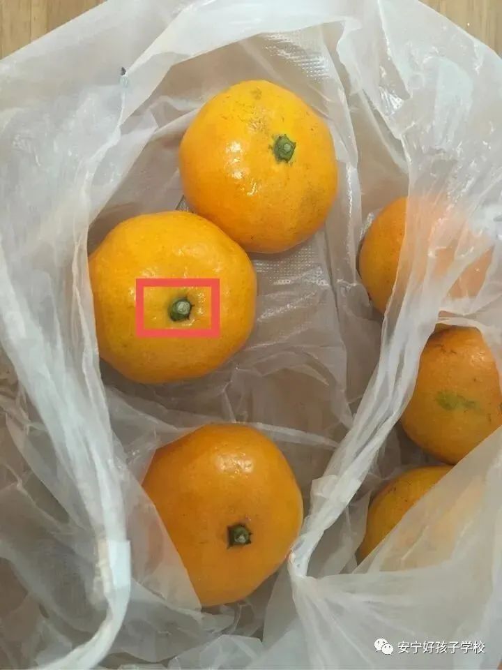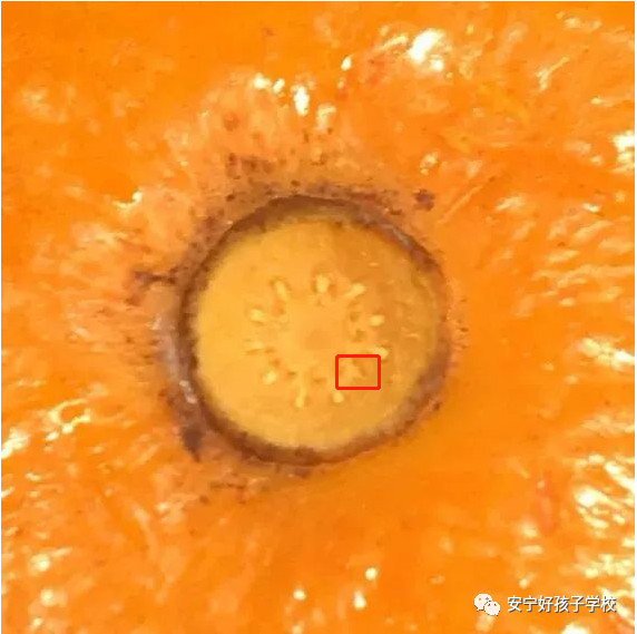 最后一個實驗是不剝開橘子皮,猜橘子的瓣數。同學們拿起橘子認真觀察,左看右看,轉著圈看,瞇著眼看,對著光看......或猶豫或堅定地說出自己猜的數字,然后剝開橘子看是否和自己猜的數字吻合。同學們有的猜對(或者說是蒙對),有的相差較大,但老師卻一猜一個準。正當同學們非常好奇老師是怎么做到的時候,老師便為大家揭曉答案:每個橘子上都有個綠梗,將橘子蒂頭整個剝掉,能看到一圈小白點,白點多少個,橘子就有多少瓣(但若發現2個白點中間空出一個位置,或有那種似有非有的白點,大可能就是沒發育好的橘子瓣)。同學們恍然大悟,原來小小的橘子里面還隱藏著這樣的奧妙呢!