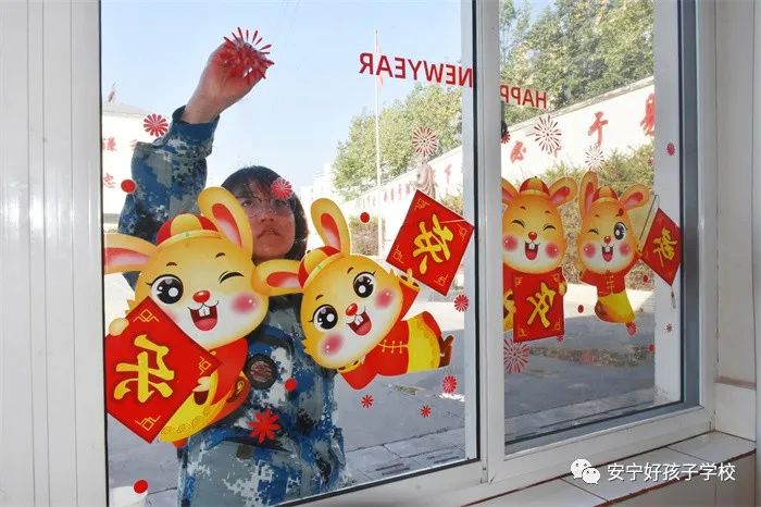 鑼鼓聲聲辭舊歲,張燈結彩迎新年。2023年1月19日至21日,為迎接兔年春節的到來,我校停課開始籌備新年的各項準備工作。師生們在對校園全面大掃除后,就用彩帶、燈籠、剪紙等飾品裝束著校園。無聯不成春,有聯春更濃。除夕上午,又把之前精心準備好的賀歲春聯貼上門,校園頓時充滿濃濃的年味兒。經過三天的忙碌,校園內張燈結彩,到處洋溢著濃郁的節日喜慶氛圍!大家都在以一顆翹首以盼的心等待兔年新春的到來......