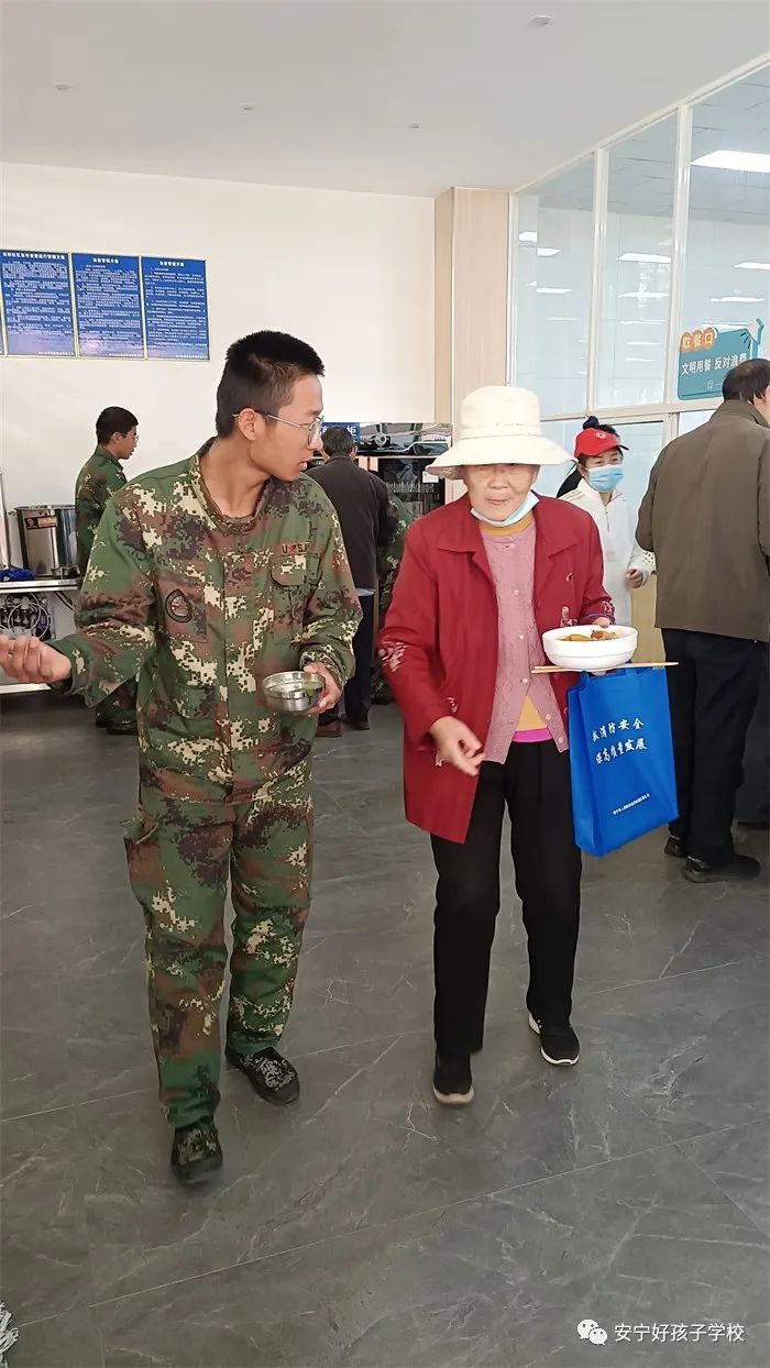 到達目的地后,同學們就立即行動起來。有的協助社區工作人員布置活動現場,有的幫助爺爺奶奶領牌登記,有的維持現場秩序,有的幫忙打飯、倒水......老人被孩子們的真誠熱情深深打動,和孩子們親熱地閑聊起來。孩子們得體的言談和暖心的行動,得到老人們的交口稱贊。養老服務中心不時傳來陣陣歡笑聲,呈現出一派其樂融融的景象。