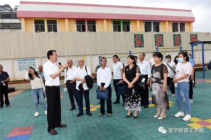 2023年6月8日,昆明市關工委未司項目指導辦主任趙久詩,副主任劉讓和、丁慧及昆明市各縣(市)區未司工作領導在安寧市未司辦主任李庭貴、共青團安寧市委書記高源、副書記徐濟炳等領導的陪同下,蒞臨我校調研指導工作。