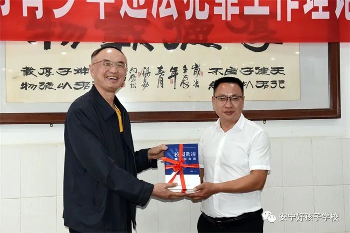 聽取匯報后,李局長一行對學校的辦學模式、教學管理、德育活動、育人氛圍等給予高度肯定,認為學校開展未成年人臨界預防、觀護幫教等工作有思路、有亮點、有特色,辦學模式獨特、安全管理規范、教學成效顯著。希望學校繼續梳理總結教學好經驗好做法,強化建章立制和推廣宣傳,形成具有安寧特色的樣板,切實當好青少年遵法守法的“護航人”、道德養成的“引路人”、健康成長的“貼心人”。