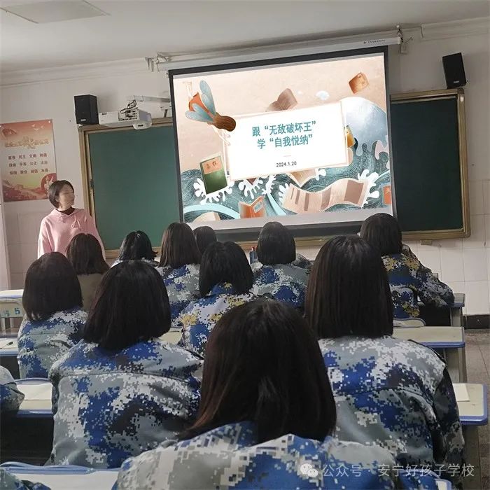 課程伊始,趙老師播放了動畫電影《無敵破壞王》,以電影主人公的經(jīng)歷為參照,引導同學們看到自我悅納要經(jīng)過歷程,并詳細講解了不同階段對應的不同挑戰(zhàn)。