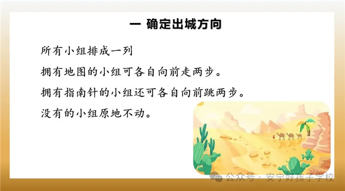 本次課程以“沙漠冒險”為背景,邀請孩子們進行了一次“沙漠大求生”,為了和小組成員一起走出“沙漠”,每個成員都要選擇犧牲一些東西來換取“物資”,以便在最后的“逃生”環節獲得便利。