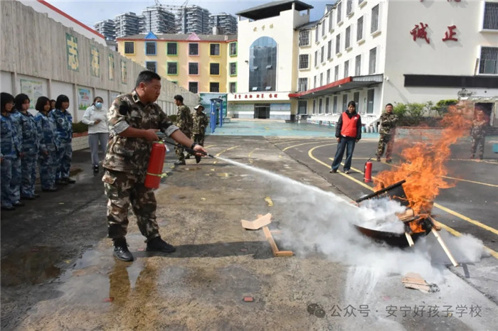 最后,張老師現場演示滅火器的使用方法,并指導在場師生親手操作,熟悉常用類型滅火器“一提、二拔、三握、四壓”的正確使用方法,進一步提高師生在突發火情時的滅火處理能力。全體師生認真觀看了現場滅火器使用演示后,有序地逐一上場實操,對模擬火源進行撲滅演練,真正做到掌握基本的消防實操技能。