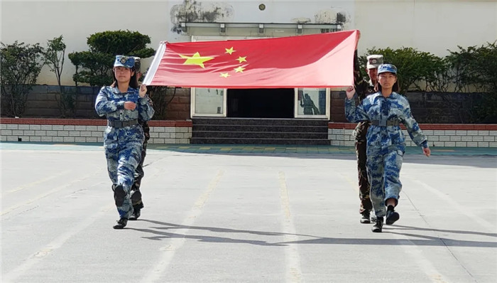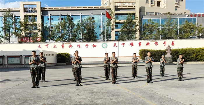 首先,進(jìn)行的是基本隊(duì)列表演。“稍息!立正......”隨著指揮員的口令,同學(xué)們按規(guī)定完成了停止間轉(zhuǎn)法、齊正步行進(jìn)與立定、敬禮與禮畢等一至八個(gè)訓(xùn)練科目,每個(gè)動(dòng)作都令行禁止,整齊的臂線(xiàn)、鏗鏘的步伐、嘹亮的口號(hào),無(wú)不展現(xiàn)了同學(xué)們“站、立、行”的隊(duì)列規(guī)范和良好的精神風(fēng)貌。