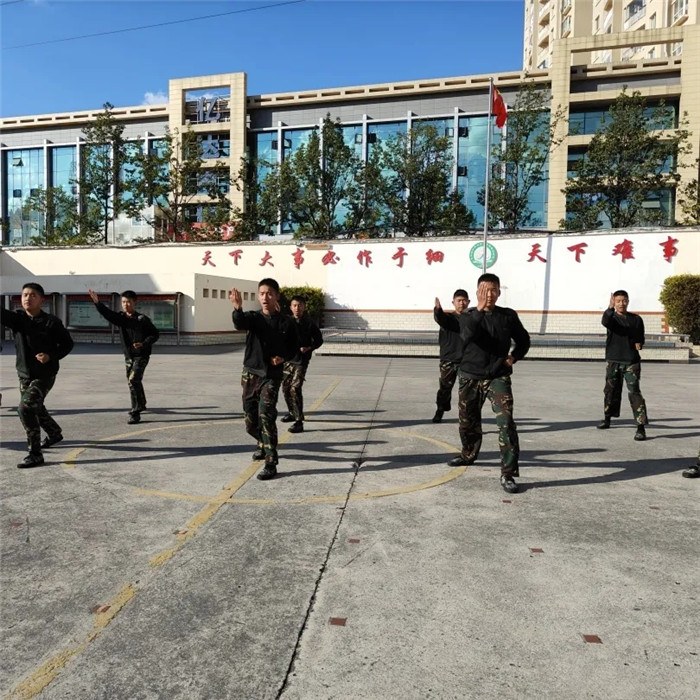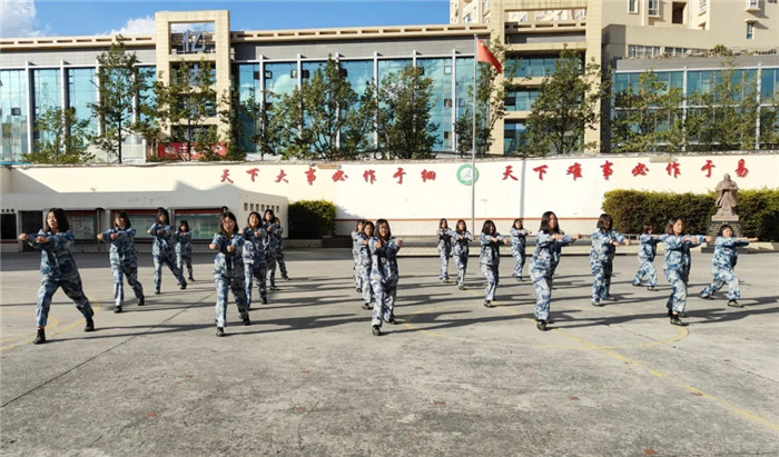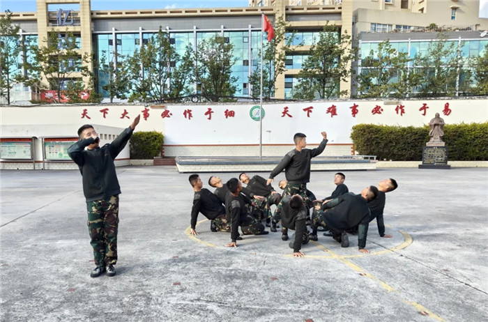 其間,三個(gè)方隊(duì)穿插表演的《擒敵拳》氣貫長(zhǎng)虹。男生們剛勁有力,步伐穩(wěn)健,毫不拖泥帶水,看得人熱血沸騰;女生們英姿颯爽,意氣風(fēng)發(fā),每一招都虎虎生風(fēng),盡顯英勇之姿。整個(gè)表演過(guò)程中,每個(gè)方隊(duì)成員們配合默契,動(dòng)作整齊劃一,每一個(gè)抬手、每一個(gè)踢腿都充滿(mǎn)力量,彰顯著他們平日里刻苦訓(xùn)練的成果。