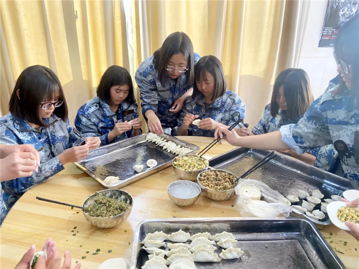 下午三點,活動在學校多功能廳舉行。食堂廚師們把餃子餡調好后,各班主任和同學們就一起開心地包起了餃子。老師們一會兒做“督導員”,一會兒捋起袖子加入到包餃子的強大陣營中,師生同樂的暖意沁人心脾。