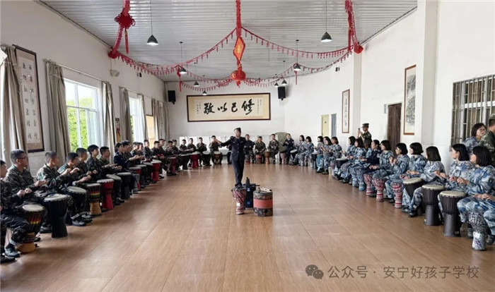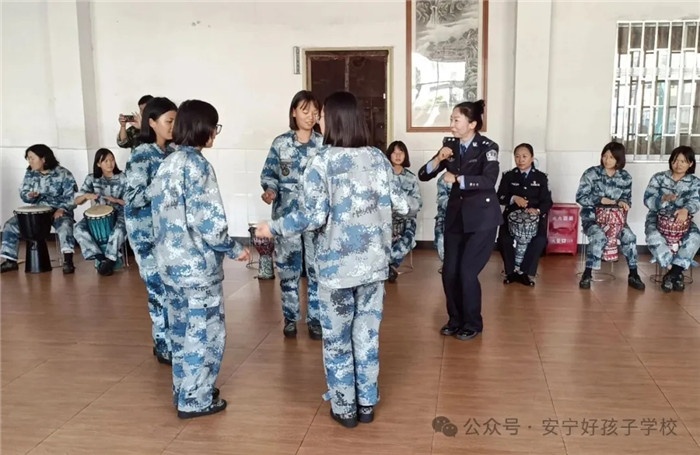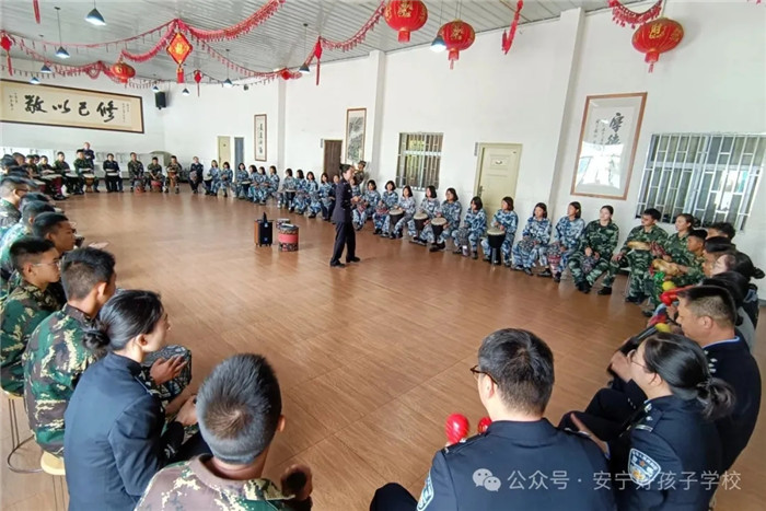 專題講座后,“鼓舞悅動煥心聲”團體輔導活動將現場氛圍推向高潮。省二所教育矯治科副科長錢錦彩運用前沿的“音樂療法”理念,帶領學生們體驗非洲鼓、沙錘、鈴鼓等樂器的獨特魅力。從基礎節奏教學入手,指導學生掌握簡潔明快的節奏要點,隨后引導大家跟隨指揮默契配合,共同演奏樂曲。