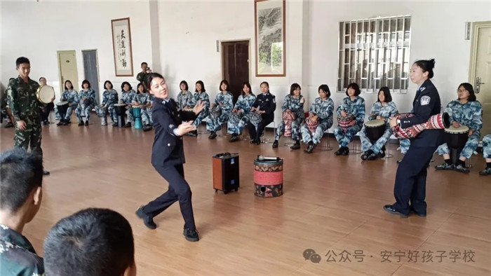 活動現場,學生們從起初的生疏拘謹,逐漸變得嫻熟自信,隨著旋律不斷推進,師生共同沉浸在歡快的節奏里,或擊鼓伴奏,或即興舞蹈,現場充滿歡聲笑語。音樂的感染力如春風化雨感染著在場每一個人,大家在這場充滿創意與溫暖的團體輔導中,感受心靈的共鳴與治愈。