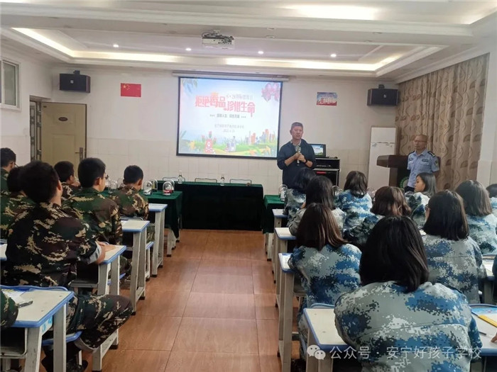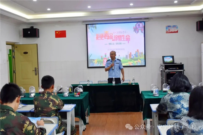 隨后,楊副主任和羅警官化身“安全守護者”,針對青少年好奇心旺盛、辨別能力薄弱、抗毒能力不足的心理特點,以一樁樁真實且觸目驚心的沉痛案例為切入點,用詳實的數據和鮮活的血淚故事,抽絲剝繭地揭示毒品的致命危害。從傳統毒品的成癮機理,到新型毒品“奶茶粉”“開心水”的偽裝陷阱;從個人健康的不可逆損害,到家庭破碎的慘痛代價,乃至社會和諧穩定的嚴重破壞,講解層層遞進、直擊心靈。羅警官語重心長地告誡同學們:“毒品絕非新奇體驗,而是通向深淵的單程票,一時的獵奇沖動,可能換來終身的枷鎖。毒品危害如洪水猛獸,一旦沾染便萬劫不復。” 他呼吁大家樹立正確的價值觀,培養積極健康的生活方式,以理性平和的心態面對成長挑戰,強化自我保護意識,做到潔身自好、謹慎擇友,堅決恪守“不好奇、不靠近、不嘗試、不僥幸、不交毒友”的“五不”原則,從源頭上杜絕與毒品的接觸。