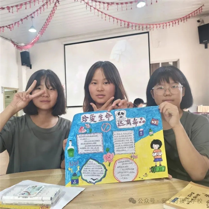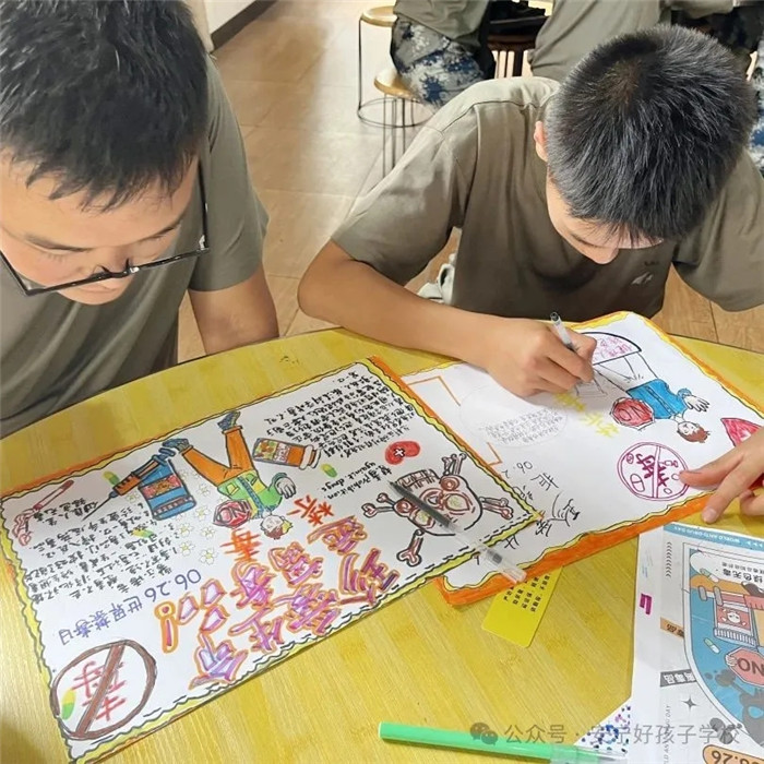 下午,一場充滿創意的禁毒手抄報創作活動在多功能室火熱開展。同學們將上午所學轉化為藝術表達,用漫畫揭露毒品騙局,用色彩描繪無毒未來。一幅幅作品構思巧妙、寓意深刻,既展現了同學們的藝術才華,更表達了他們對毒品堅決抵制的決心。